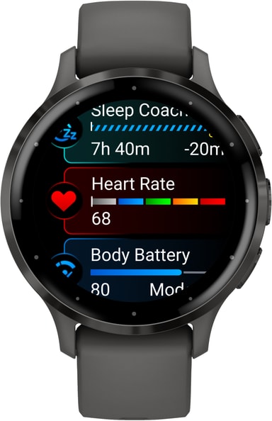 Venu 3S har integrerade GPS-positionstjänster för att mäta avstånd och din takt med enastående noggrannhet, även inomhus. Smartklockan kommer räknar steg, löpturer, cykla och kan meddela dig om du sitter längre än en timme. Du kan registrera aktivitet även efter träning.