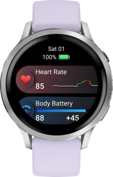 Med Garmin Venu 4 får du enkel tillgång till en omfattande översikt över din hälsostatus. Funktionen Fitness Age ger en uppskattning av din kropps ålder baserat på dina aktivitetsnivåer och hälsovärden.
