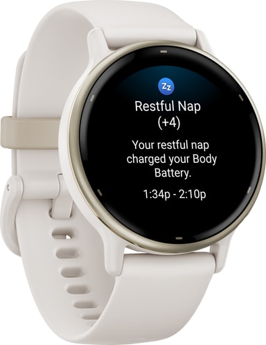Klockan har massor av funktioner som gör att du kan se och övervaka din hälsostatus. Håll koll på din sömn och dina stressnivåer eller få ett meddelande när du tar en tupplur tack vare sömndetektering. Klockan har också en morgonrapport, hälsoövervakning för kvinnor och meditationsfunktioner.