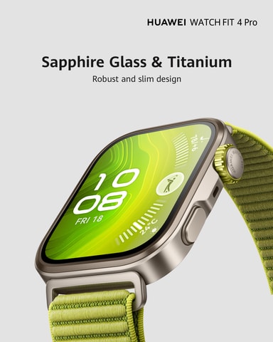 Huawei Watch Fit 4 Pro kombinerar premiumaterial i en smidig, ultratunn form. Med en kombination av safirglas och titan erbjuder den både hållbarhet och sofistikering samtidigt som den är fjäderlätt med sina 30 gram. Den imponerande 1,82" AMOLED-skärmen når en toppljusstyrka på 3000 nits, vilket säkerställer kristallklar synlighet även i direkt solljus, vilket gör den perfekt för både träning och daglig användning.