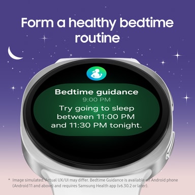 Galaxy Watch8 har fått en helt ny, kompakt design och är den tunnaste Galaxy-klockan hittills – hela 11% tunnare än Galaxy Watch7. Den slimmade profilen gör att klockan sitter ännu mer bekvämt på handleden och ger en stilren känsla, oavsett om du använder den till vardags, under träningen eller när du sover.*