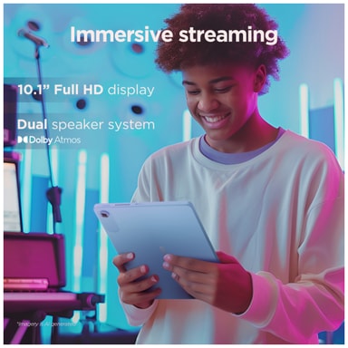 Lenovo Tab har en 10,1-tums Full HD-skärm med en upplösning på 1920 x 1200 pixlar, vilket ger upp till 1080p streamingkvalitet. Detta säkerställer att dina favoritprogram och videor visas med fantastisk klarhet och detaljrikedom. Den TÜV-certifierade ögonvårdstekniken minskar ögontrötthet och möjliggör bekväma, långa visningssessioner. Uppdateringsfrekvensen på 60 Hz ger jämna bilder, vilket gör den perfekt för att titta på videor, surfa eller läsa.