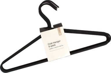 A Home galgarna har en minimalistisk, rak metallram klädd i tyg för ett elegant och enhetligt utseende. Den neutrala svarta finishen smälter enkelt in i alla garderobsinredningar och erbjuder både funktion och subtil stil.
