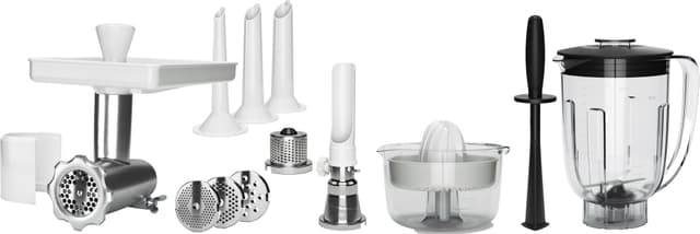 • För att mala, blanda, pressa, strimla