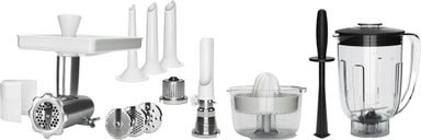 Ankarsrum Deluxe tillbehörsset 920900085 utökar Assistent Original köksmaskin till ett komplett köksverktyg. Det inkluderar tillbehör för malning, blandning, pressning och rivning, tillsammans med en citruspress, mixer och korvtillverkningsverktyg, vilket ger dig allt som behövs för mångsidig vardagsmatlagning. Setet innehåller en köttkvarn, fyra hålskivor (2,5, 4,5, 6 och 8 mm), tre korvtrumpeter (10, 20 och 25 mm), en sil, rivjärn, citruspress, mixer och mixerstav, vilket erbjuder fullständig mångsidighet för alla köksuppgifter.