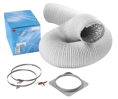 Installera utloppet till köksfläkten med monteringskit från Nordic Quality. Slangen har en längd på 3 m med diametern 152 mm.