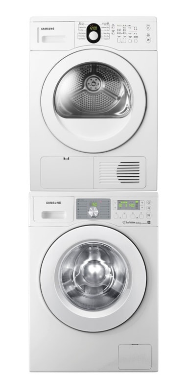 Spara utrymme i ditt hushåll genom att placera din torktumlare ovanpå tvättmaskinen med Samsung staplingskit SKDH.