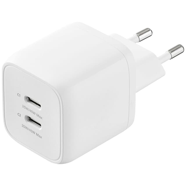 • Sandstrøm 45W USB-C GaN PD väggladdare (vit)