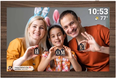 Design: Den enkla bruna ramen med träfinish passar perfekt in i de flesta dekorer, oavsett om det är på ditt sängbord, på en hylla i ett kök eller på väggen i ditt vardagsrum. Ramen är väggmonterbar tack vare ett VESA 100-fäste och den har ett litet stativ på baksidan också. Utöver det kommer Frameo med en inbyggd klocka och kalender samt ett schema på/av för att inte störa dig på natten. Håll dina minnen nära.