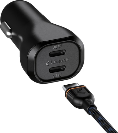 • Unisynk 50W dubbel USB-C billaddarkit (svart)