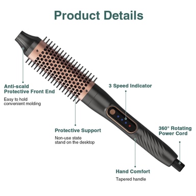 Snabb uppvärmning: Varmluftsborsten kan värmas upp på endast några sekunder, vilket sparar dig välbehövlig tid. Slipp den långa väntan innan du kan börja styla ditt hår.