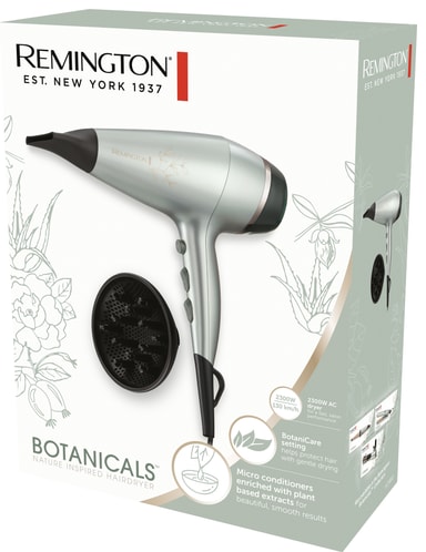 Remington Botanicals hårfön AC5860 blir snabbt ditt pålitliga hårstylingverktyg som inte bara ger en snabb hårtorkning utan också vårdar varje hårstrå tack vare dess mikrobalsam med extrakt från jojoba, aloe och rosLäs mer om produkten