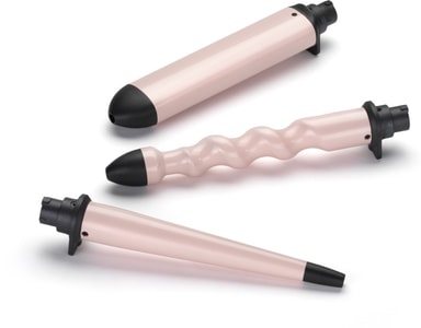 BaByliss Curl &Wave Trio är ett stylingverktyg av salongskvalitet med 3 utbytbara curlinghuvuden för att skapa lockar, vågor och en avslappnad texturerad finish.