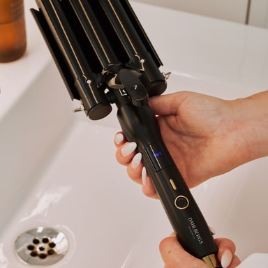 Skapa vackra vågor med Dahlbergs Scandinavia Black Gold. Den keramiska beläggningen på cylindrarna skyddar ditt hår samtidigt som den säkerställer en jämn värmefördelning. Vågtången når snabbt önskad temperatur, vilket sparar tid och energi. Med temperaturkontroll från 140°C till 200°C kan du enkelt anpassa värmen efter din hårtyp och önskade resultat. Med en storlek på 25 mm på cylindrarna är den idealisk för att skapa stora, härliga beach waves. Kompakta vikbar designen gör den också enkel att ta med sig.