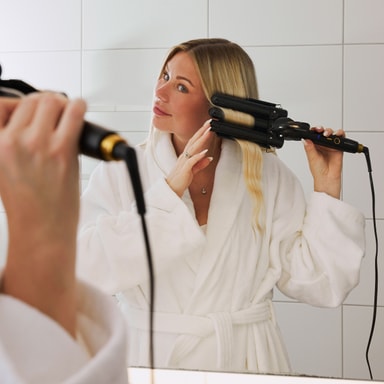 För att skapa vackra vågor med Dahlbergs Scandinavia Waver Tove, börja med att förbereda ditt hår genom att applicera ett värmeskydd för att skydda det mot värmen. Anslut vågtången och ställ in den önskade temperaturen mellan 140°C och 200°C, beroende på din hårtyp.