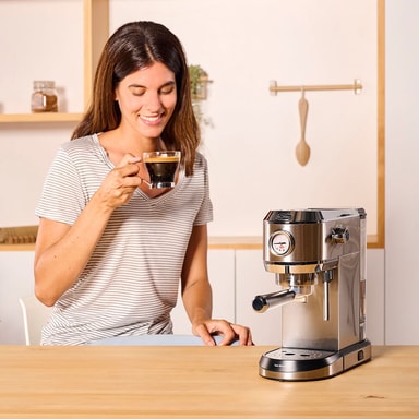 Njut av en god espresso denna med 20-bars espressomaskin för en espresso med den bästa crema tack vare Solacs Double Cream-system. Och dessutom kan du njuta av din espresso direkt, eftersom den har termoblock-uppvärmning.