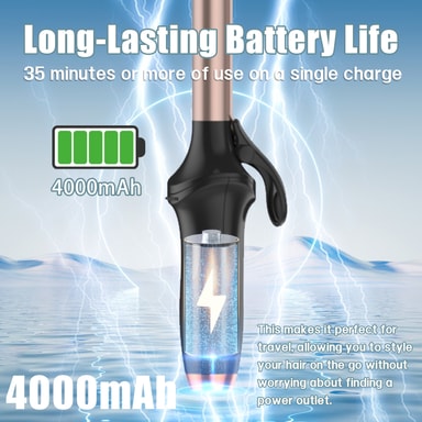 Uppladdningsbar och med lång batteritid: Stylingredskapet är utrustad med ett kraftfullt 4000 mAh Litiumbatteri som ger en drifttid på minst 35 minuter eller mer på en enda laddning, vilket gör att du slipper att ha en sladd i vägen när du fixar frisyren. Detta gör locktången även perfekt för resor och när du är på språng, eftersom du inte behöver hitta ett eluttag.