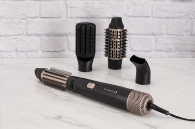 Oavsett om du vill ha lockar, mjuka vågor med volym eller rakt hår kan du skapa det med Remington Blow Dry & Style Caring varmluftsborste AS7500. Jonisk konditionering gör ditt hår frissfritt medan de fyra tillbehören tar hand om alla dina stylingbehov.Läs mer om produkten