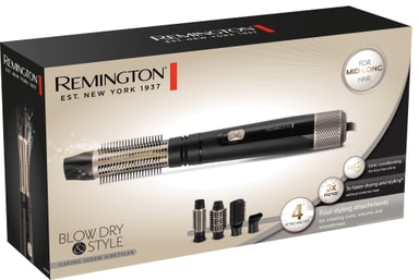 Skapa din siganturlook med Remington Blow Dry & Style Caring varmluftsborste AS7500. Detta kraftfulla stylingredskap kommer torka och styla ditt hår samtidigt och utan extrem värme. Kontrollera hela processen me de justerbara hastighets- och värmeinställningarna och använd en av de inkluderade tillbehören för att få din önskade frisyr.