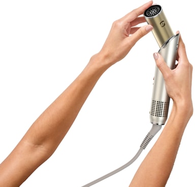 Designad för att fungera på både vått och torrt hår, vilket gör att du kan hoppa över hårtorken. I vått-till-torrt-läge överstiger temperaturen aldrig 150°C, vilket skyddar håret från överdriven värme medan du torkar och stylar i ett enda steg.