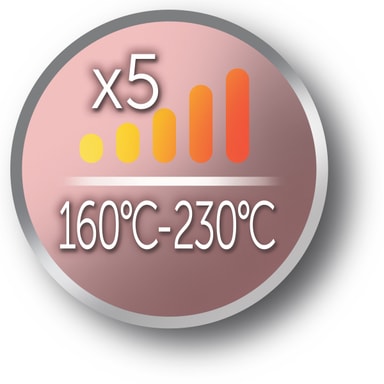 Du kan enkelt anpassa temperaturen på plattången i 5 olika lägen. Temperaturen varierar mellan 160 till 230 grader.