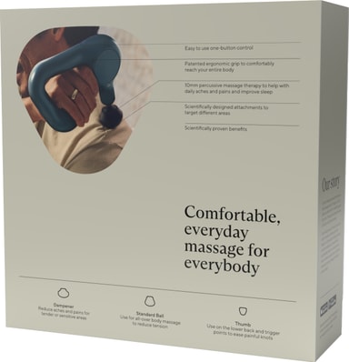 Theragun Relief massagepistol från Therabody har en speciell design med triangelgrepp och kommer med 3 fästen för att hjälpa dig hantera muskelsmärtor och envisa knutar på ryggen. Den uppladdningsbara massagepistolen kan användas i 120 minuter fulladdad.Läs mer om produkten
