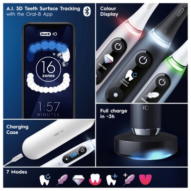 Med avancerad iO-rengöringsteknologi har eltandborsten iO9 3D-tandspårning, AI och smarta trycksensorer, så att du kan njuta av professionellt rena tänder hemma.