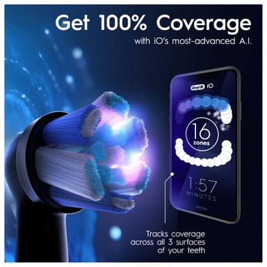 Med avancerad iO-rengöringsteknologi har eltandborsten iO9 3D-tandspårning, AI och smarta trycksensorer, så att du kan njuta av professionellt rena tänder hemma.