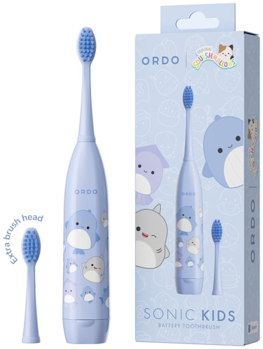 Ordo Sonic Kids eltandborste 44915 är designad för barn 4+. Den har ett ovalt borsthuvud för skonsam, effektiv rengöring, en inbyggd timer och en rolig Squishmallow-design för att göra borstningen rolig.Läs mer om produkten
