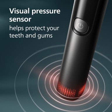 En inbyggd trycksensor upptäcker när du borstar för hårt och varnar dig med en synlig ljussignal. Detta hjälper till att skydda tandkött och emalj från överborstning.