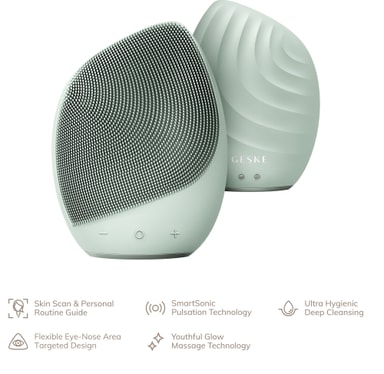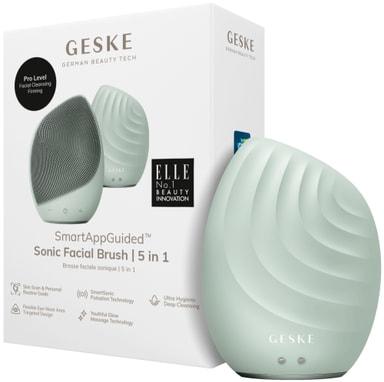 Få glänsande hy med Geske Sonics ansiktsrengöringsborste GK000010GN01. Det är en 5-i-1-apparat med 14-hastighetsinställningar, SmartSonic Pulsation och andra kraftfulla teknologier för djuprengöring och anti-aging-massage.Läs mer om produkten