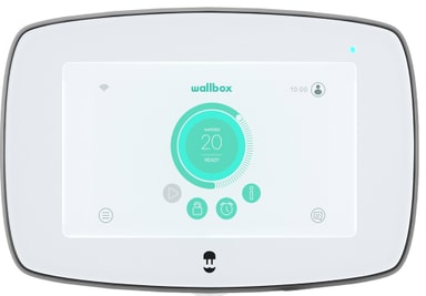 Wallbox Commander elbilsladdare är speciellt designad för parkeringszoner som semi-offentliga eller tillhör företag och den har en 7-tum stor pekskärm som låter dig justera effekten. Den kommunicerar med MyWallbox-portalen eller appen via Wi-Fi, Ethernet eller Bluetooth.
