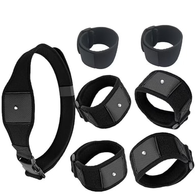 Set med 10 remmar (midjebälte x1, handflatsrem x2, handledsrem x2, förlängningsrem x2, huvudrem x1, ankelrem x2)