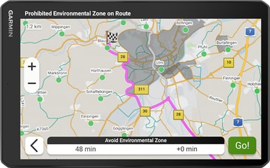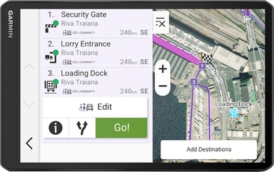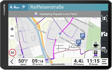 GPS:en har en uppsjö av funktioner som hjälper dig på vägen. Tack vare ruttöversikten med väderuppdateringar och vindhastighet på din destination och längs din rutt är du alltid beredd på växlande situationer. Du kan kolla populära lastbilsvägar för bättre medvetenhet i okända områden, medan den anpassade lastbilsrutten väljer den bästa vägen till din destination, undviker broar och hinder som din lastbil är för stor för att passera och varnar dig för skarpa kurvor, branta lutningar och mer. Miljözonsdirigering ger vägledning och varning medan du kör så att du alltid vet hur du kör i vissa områden. Den medföljande BirdsEye-satellittekniken ger överblick över din destination och dessutom kommer GPS:en med Truck Parking Europe, så att du kan filtrera dem efter bekvämligheter.