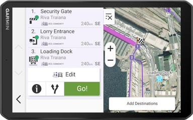 Kör säkert med hjälp av Garmin dēzl LGV820 truck GPS. Den stora 8” pekskärmen erbjuder ett mycket responsivt gränssnitt och en detaljerad kartöversikt, tillsammans med BirdsEye-satellitteknik. Välj den mest optimala rutten till din destination med anpassad rutt, och få väder- och trafikuppdateringar i realtid tack vare Garmin-appen. Få dessutom tillgång till de bäst rankade lastbilshållplatserna tack vare gemenskapsinsikter.