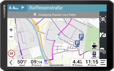 GPS:en har en uppsjö av funktioner som hjälper dig på vägen. Tack vare ruttöversikten med väderuppdateringar och vindhastighet på din destination och längs din rutt är du alltid beredd på växlande situationer. Du kan kolla populära lastbilsvägar för bättre medvetenhet i okända områden, medan den anpassade lastbilsrutten väljer den bästa vägen till din destination, undviker broar och hinder som din lastbil är för stor för att passera och varnar dig för skarpa kurvor, branta lutningar och mer. Miljözonsdirigering ger vägledning och varning medan du kör så att du alltid vet hur du kör i vissa områden. Den medföljande BirdsEye-satellittekniken ger överblick över din destination och dessutom kommer GPS:en med Truck Parking Europe, så att du kan filtrera dem efter bekvämligheter.