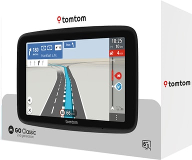TomTom GO Classic 6" sat-nav2nd gen har en mycket lyhörd 6" TFT-pekskärm, kartuppdateringar från 27 europeiska länder, livetrafikuppdateringar med TomTom Traffic och bekväm Moving Lane Guidance.