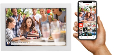 10,1-tums Wi-Fi-ramen har en ljus IPS-pekskärm med en upplösning på 1280 x 800p. Ägaren av ramen kan interagera med de inkommande bilderna, ge likes eller lägga till kommentarer även utan ett socialt nätverkskonto.