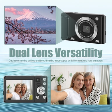 Dubbla objektiv: Fånga fantastiska selfies och hisnande landskap med de främre och bakre kamerorna. Kamerans dubbla kameror ger exceptionell flexibilitet för din fotografering. Med 3,0-tums LCD-skärm för enkel navigering och uppspelning.