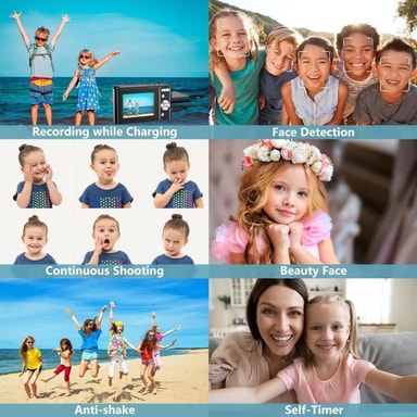 Smarta funktioner: Förbättra dina bilder med flera smarta funktioner. Kameran har stöd för anti-skak, ansiktsigenkänning, leendeigenkänning, serietagning och selfie-timer. Pausfunktionen gör det enkelt att pausa under inspelning eller uppspelning av videor.
