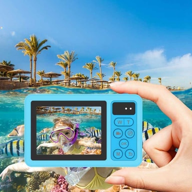 D70 2,8 + 1,44 tums digitalkamera med dubbla skärmar Vattentät kamera med 32 GB kort + kortläsare - Blå【Dual Screen Design】 Har en 2,8-tums IPS-huvudskärm och en 1,44-tums sekundärskärm för mångsidiga visningsalternativ【Högupplöst bildbehandling】 TaLäs mer om produkten