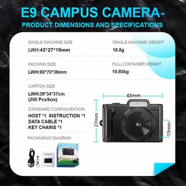 【Retro Mini Design】Kompakt och lätt kamera perfekt för studenter och nybörjare, med en vintage-estetik med modern funktionalitet.【High-Definition-inspelning】Fånga skarpa videor i 1920*1080P-upplösning och ta tydliga foton i JPG-format.【Färgglad skärmLäs mer om produkten