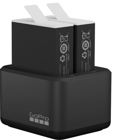 GoPro Dual batteriladdare kommer att ta hand om dina laddningsbehov tack vare de två platserna som samtidigt laddar två GoPro Enduro-batterier. Den kompakta, men ändå bekväma designen passar på alla bord eller i en väska utan att ta mycket plats. Och tack vare de 2 medföljande-batterierna kan dina äventyr fångas längre