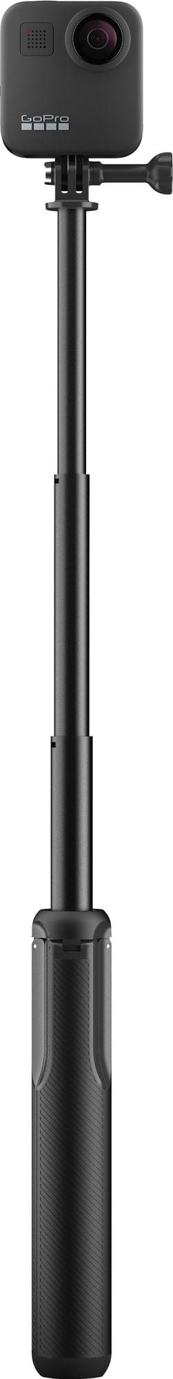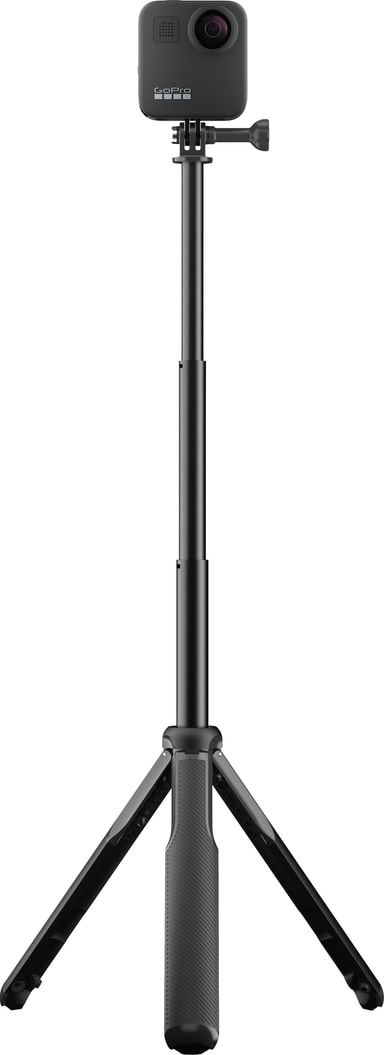 GoPro Max grepp + stativ är speciellt designad för GoPro Max så du kan ta 360-bilder utan att stången syns, men det kan användas med vilken som helst av GoPros kameror. Stången fungerar som ett kameragrepp, förlängningsst¨ng eller stativ med magnetfötter och kan utökas upp till 56 cm.