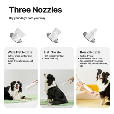 De justerbara inställningarna hjälper dig att ställa in rätt torktemperatur och hastighet och se till att dina husdjur håller sig bekväma under hela processen. Du kan välja mellan två hastigheter och fyra värmeinställningar.