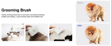 Enheten levereras med löstagbara borstar som försiktigt tar bort löst hår och trassel. Träningsborsten, avmattningsborsten och avfallsborsten arbetar hand i hand för att säkerställa att dina husdjur får den vård de förtjänar och håller pälsen frisk.