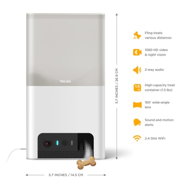 Petcube Bites 2 Lite gör det möjligt för dig att vara närmare ditt husdjur när du inte är hemma. 1080p HD-video och mörkerseende gör att du kan få en tydlig bild av vad som pågåri ditt rum, även i mörkret, och du kan prata till eller höra ditt husdjur tack vare tvåvägs-ljudsystemet med ett verklighetstroget ljud. Den inbyggda godisdispensern kommer väl till hands när du vill belöna ditt djur för gott beteende eller för att lindra seperationsångesten.