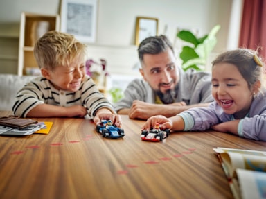 Detta lättbyggda lekset med F1-bilar innehåller en LEGO startkloss och en bildguide, och 3D-instruktioner finns i appen LEGO Builder – en digital byggkompis med verktyg som låter barn zooma in, rotera och visualisera modellerna från alla vinklar medan de bygger.