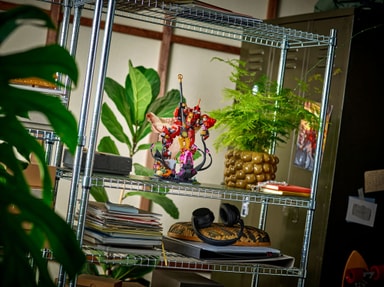 • Uppvisningsset med ninjor – Denna dramatiska scen, som skildrar eldriddarroboten med en mantel och ett spjut som strider mot ett uråldrigt monster som dyker upp ur havet, kan visas upp i ditt rum