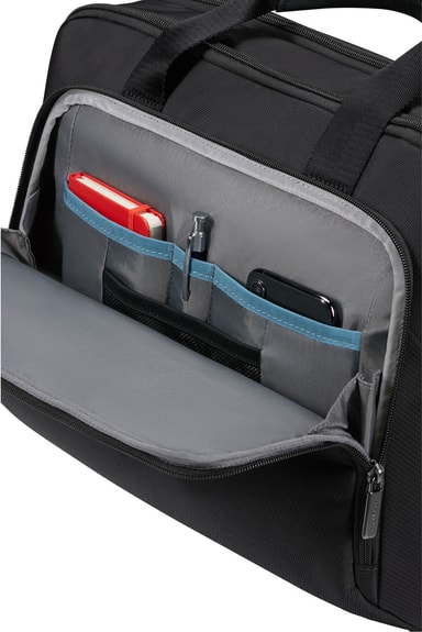 Tack vare Samsonite Evosight Bailhandle 15,6" laptopväska kan du hålla din bärbara dator och andra kontorsmaterial säkra. Den är vattentät och dess nylonmaterial håller repor och sprickor borta från dina enheter.